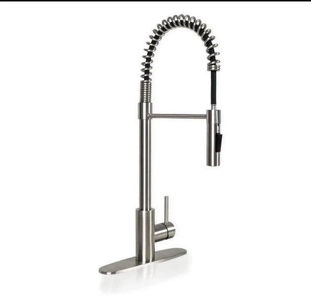 1-HANDLE PULL-DOWN SPRAYER KITCHEN FAUCET WITH DECKPLATE 804 NICKEL-BRUSHED