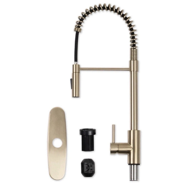1-HANDLE PULL-DOWN SPRAYER KITCHEN FAUCET WITH DECKPLATE - 804 GOLD.